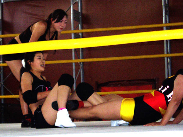シエイがスイカに足四の字を極めているところ、技かけながら笑ってるシエイは怖いのです。